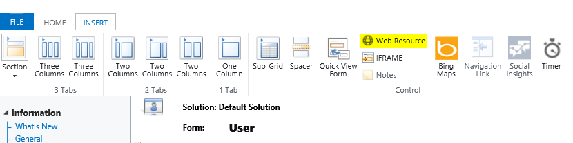 Step 8: Click on Web Resource, under Insert tab on User Information form,